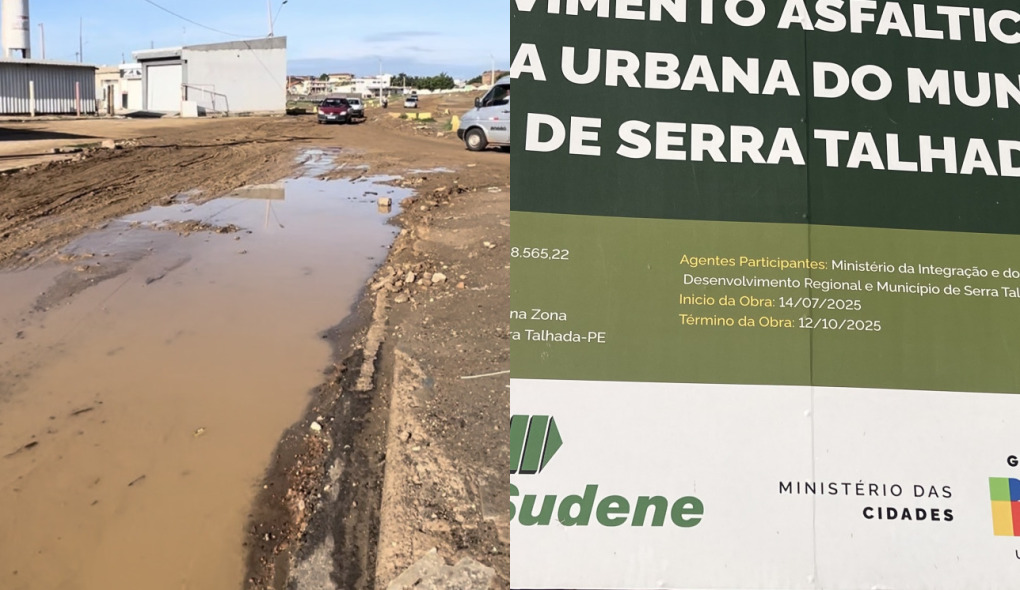 No local, a placa da obra segue instalada. Nela, consta a descrição de pavimentação asfáltica em zona urbana do município, com investimento superior a R$ 2 milhões. A ordem de serviço foi assinada em junho do ano passado pela prefeita Márcia Conrado, ao lado de aliados políticos, com a presença do deputado federal Fernando Monteiro. No entanto, segundo o que se observa no local, a obra sequer teve início efetivo.