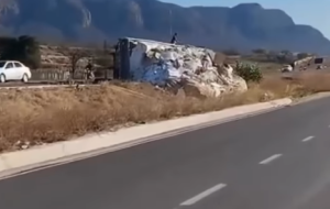 CAMINHÃO CARREGADO DE GESSO TOMBA NA BR-232, PRÓXIMO AO BAIRRO VILA BELA, EM SERRA TALHADA