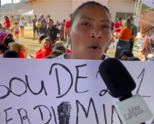 Leonice afirma que, apesar de se enquadrar no perfil das famílias afetadas, não foi contemplada entre as 902 unidades habitacionais entregues no residencial. No local, ela apresentou suas reclamações e reivindicações, cobrando explicações e uma solução.