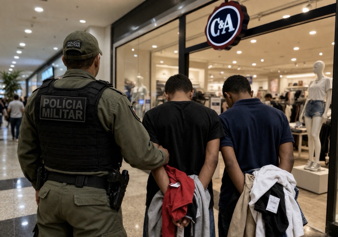 De acordo com a PM, os jovens foram surpreendidos por funcionários do estabelecimento antes da chegada da polícia. Eles teriam subtraído 10 peças de roupa, avaliadas em R$ 519,90, escondendo os produtos junto ao corpo e aproveitando-se da ausência de sensores de alarme. Funcionários informaram ainda que os menores eram suspeitos de praticar ação semelhante no dia anterior.