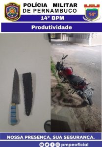 Na madrugada deste sábado (1º), policiais militares do 14º BPM prenderam em flagrante um homem por porte ilegal de arma branca e condução de veículo sob efeito de álcool, no Centro de São José do Belmonte, Sertão de Pernambuco.