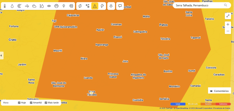 INMET emite alerta para Serra Talhada e região de baixa umidade com nível de Severidade: Perigo