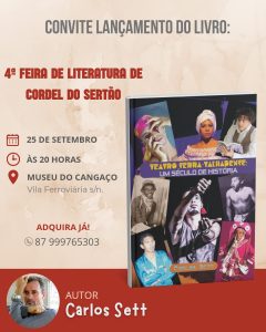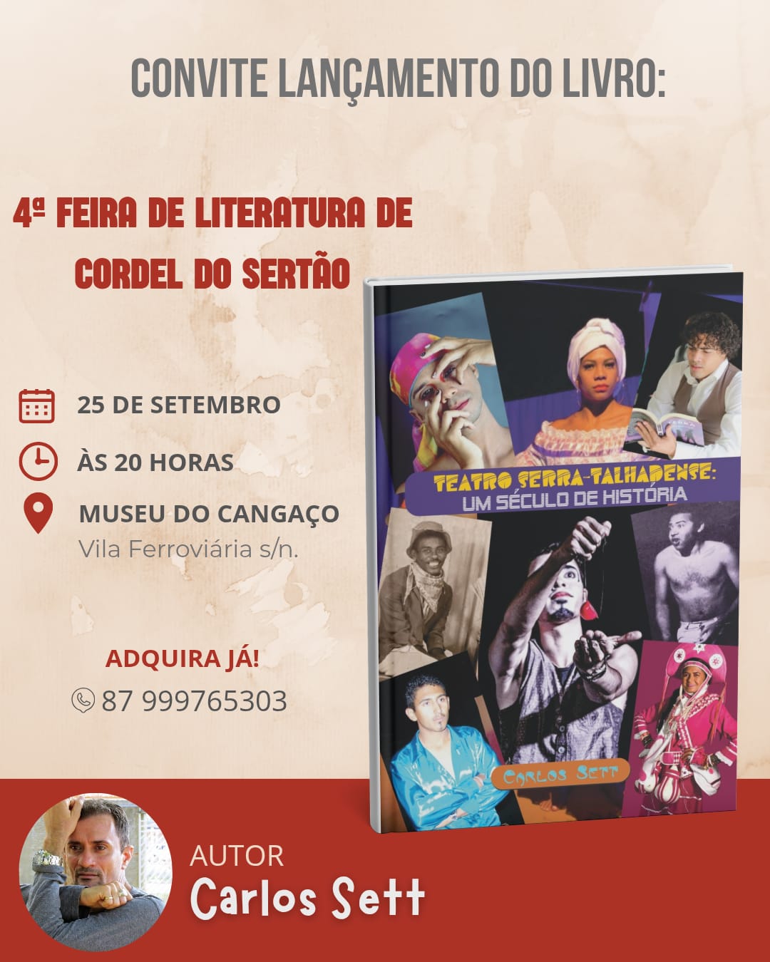 Então, se programe para estar com a gente nos dias 24 e 25 de setembro de 2025, no Quintal do Museu do Cangaço, na antiga Estação de trem de Serra Talhada para este evento. Os livros estão disponíveis para venda, e pode ser adquiridos no local do lançamento e/ou diretamente com o autor pelo direct das suas redes sociais  @carlossettator (Instagram e Facebook).
